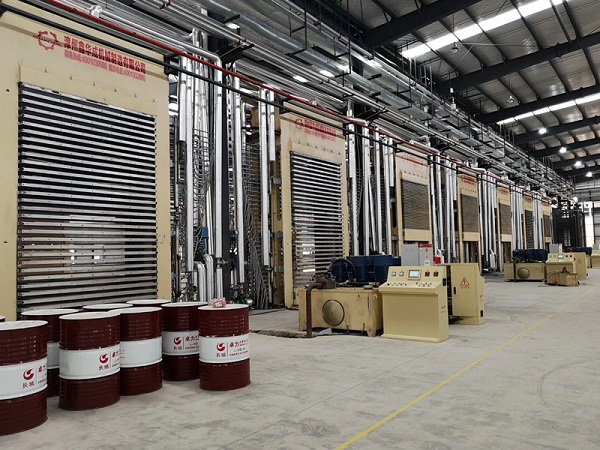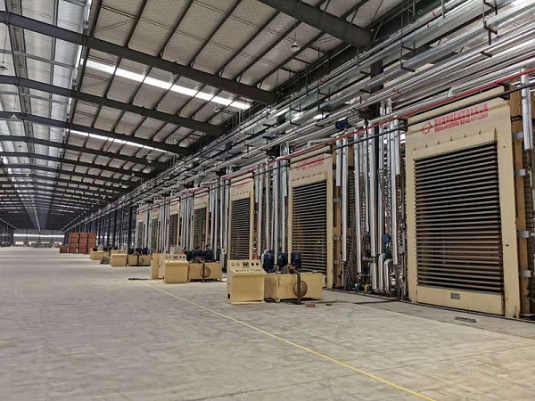 我司非常榮幸能夠為四川省威遠縣達威木業(yè)有限公司提供生態(tài)板設備,日產(chǎn)量為1萬(wàn)張/天。于2019年中旬成功上線(xiàn)生產(chǎn)高質(zhì)量的生態(tài)板。
